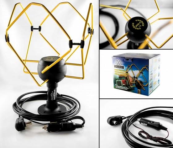 Антена автомобільна телевізійна KORONA MOBIL аналогового та цифрового сигналу для вантажних та легкових автомобілів. Антена Korona Mobil 12V/24V має підсилювач, що забезпечує добрий аналоговий і цифровий DVB-T сигнал. Всебічна форма на практиці дає можливість автоматично приймати сигнал з 360 градусів.