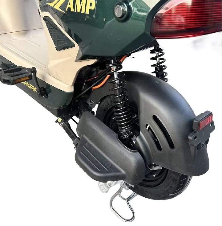 Регульовані дзеркала заднього виду є запорукою хорошого огляду без необхідності крутити головою, тут все, як на справжньому моторолері. Передня LED-фара формує яскравий і рівномірний світловий пучок, добре висвітлюючи дорогу в темний час. Водночас світлодіодна технологія споживає менше енергії. Задній ліхтар поєднує стоп-сигнал і покажчики повороту, тому електротранспорт добре помітний для інших учасників руху під час гальмування або зміни напрямку. На дисплеї відображаються всі необхідні для користувача показники: швидкість, рівень заряду, пробіг, увімкнення круїз-контролю, поворотників та дальнього світла. До того ж вся інформація легко зчитується навіть під сонячними променями. Система запуску з NFC-ключем додає сучасності та зручності у користуванні. Для активації транспорту достатньо всього одного дотику. Модель оснащена сигналізацією, яка підвищує рівень захисту електровелоскутера під час паркування. Завдяки цьому сторонні особи не зможуть увімкнути транспорт без дозволу власника. Сталева рама витримує навантаження до 150 кг, а конструкція моделі продумана таким чином, щоб SPARK AMP був довговічним та невибагливим у використанні. SPARK AMP оснащений підніжкою для паркування та переднім кошиком, куди можна покласти необхідні у дорозі речі.